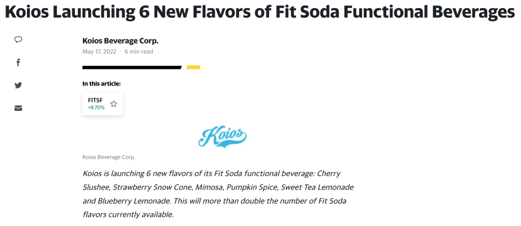 Koios Launching 6 New Flavors of Fit Soda Functional Beverages
